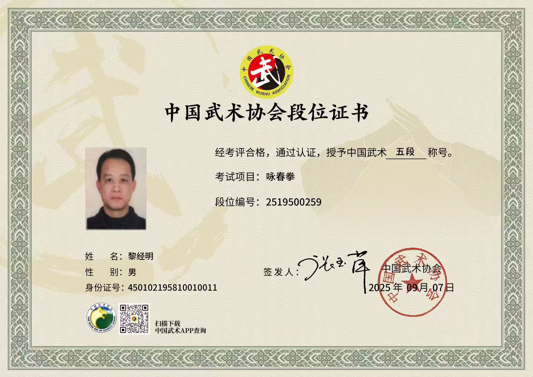 世界非遗传承网公示:2025年10月23日,经世界非遗传承人大数据研究院审核,认为广西南宁市黎经明同志申报的“咏春医学跌打十二手推拿”具有传承价值,符合申报条件,准许入库世界非遗传承网《世界传承·人才智库》。